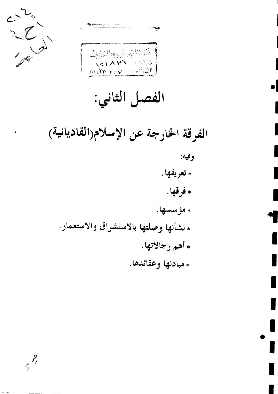 الفصل الثاني: الفرقة الخارجة عن الإسلام (القاديانية)