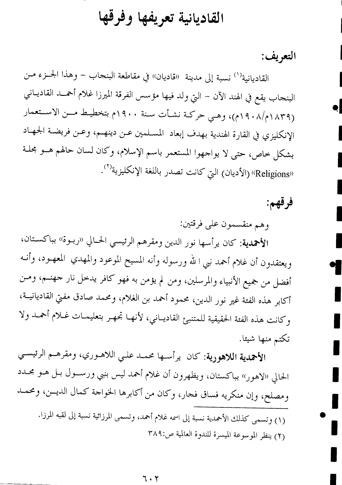 (¬٢) ينظر الموسوعة الميسرة للندوة العالمية ص: ٣٨٩.