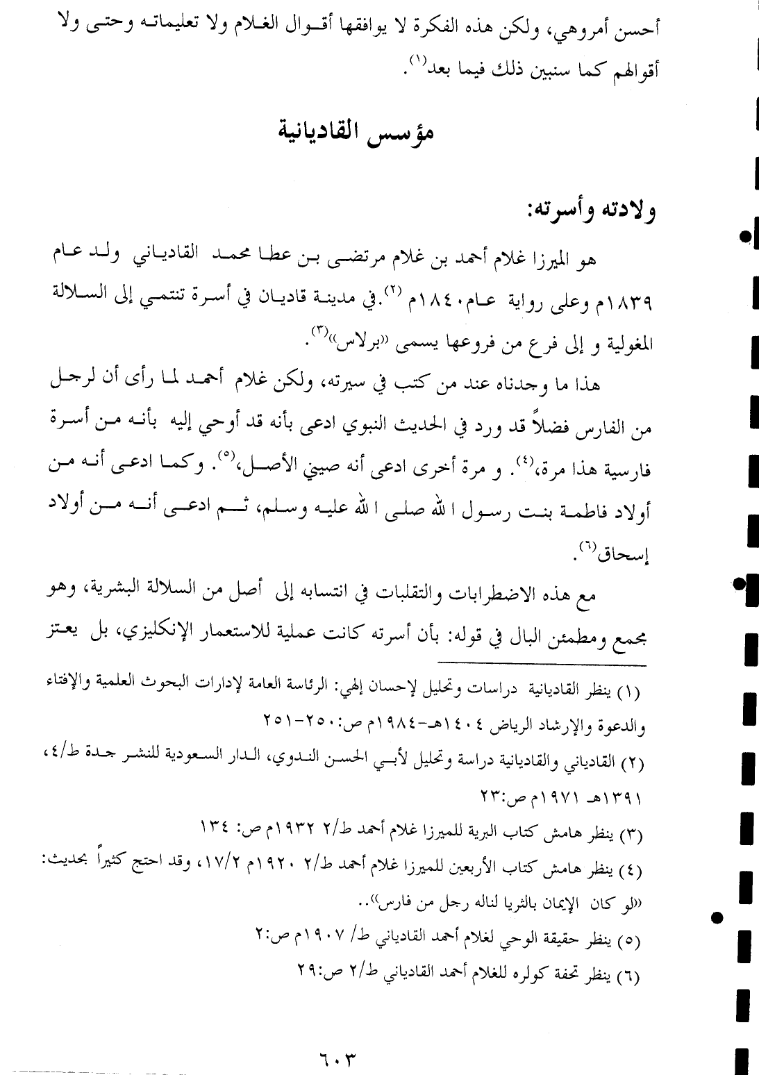(¬١) ينظر القاديانية دراسات وتحليل لإحسان إلهي: الرئاسة العامة لإدارات البحوث العلمية والإفتاء والدعوه والإرشاد الرياض ١٤٠٤ هـ - ١٩٨٤ م ص: ٢٥٠ - ٢٥١.