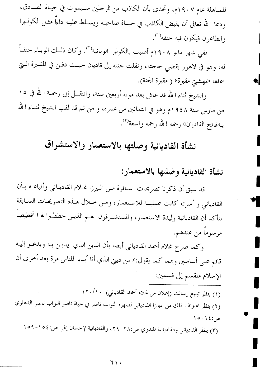 (¬٣) ينظر القادياني والقاديانية للندوي ص: ٢٨ - ٢٦، والقاديانية لإحسان إلهي ص: ١٥٤ - ١٥٩.