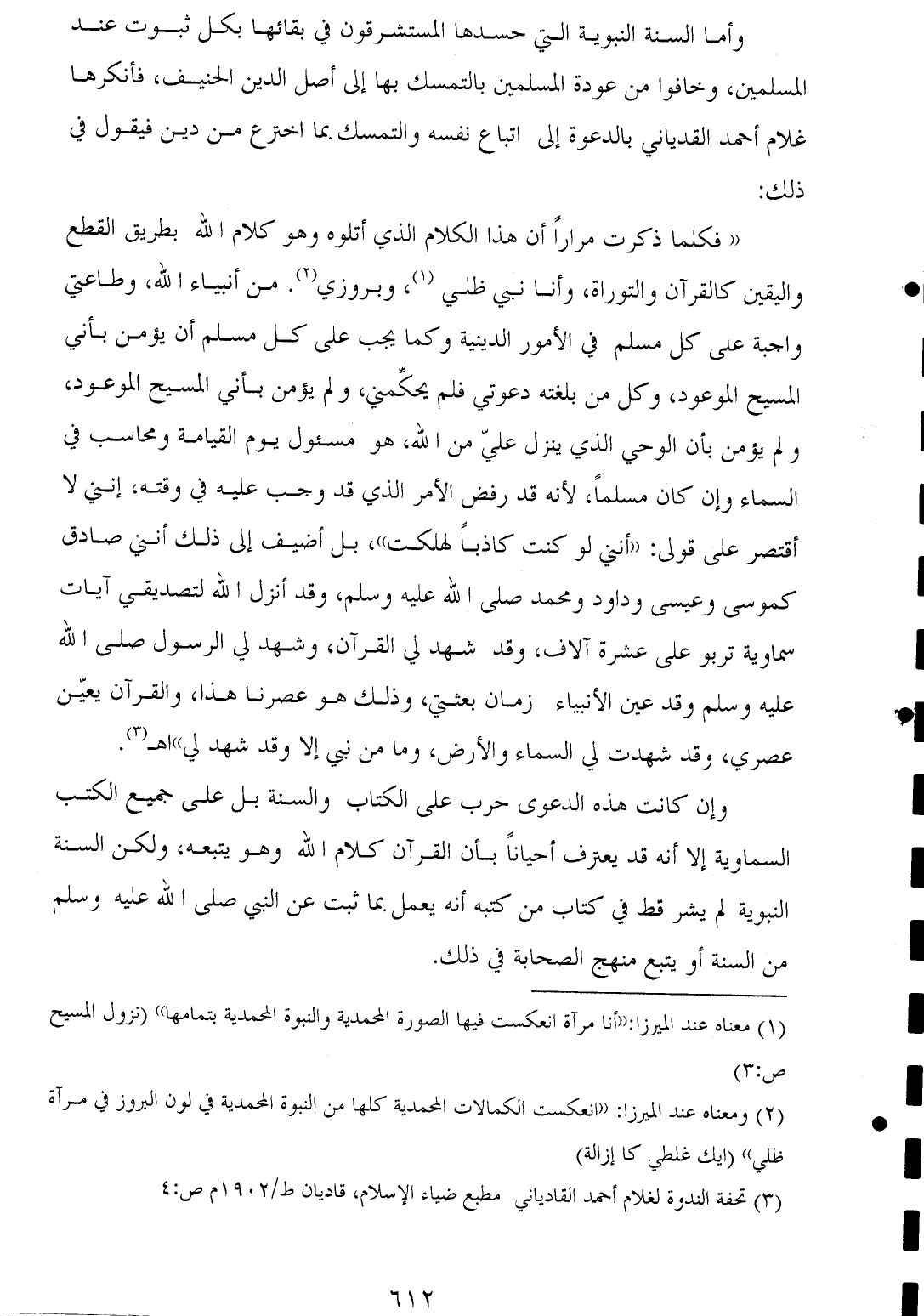 (¬٣) تحفة الندوة لغلام أحمد القادياني مطبع ضياء الإسلام، قاديان ط/ ١٩٠٢ م ص: ٤.