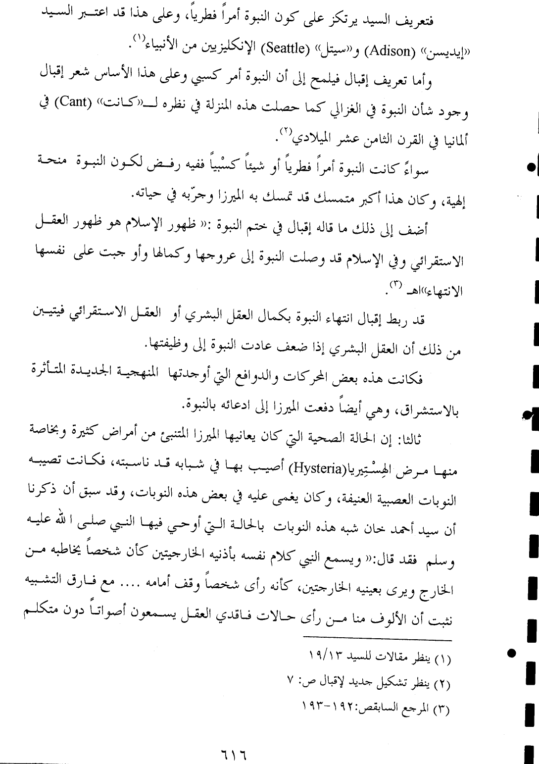 أضف إلى ذلك ما قاله إقبال في ختم النبوة: "ظهور الإسلام هو ظهور العقل الاستقرائي وفي الإسلام قد وصلت النبوة إلى عروجها وكمالها وأوجبت على نفسها الانتهاء" اهـ (¬٣).
