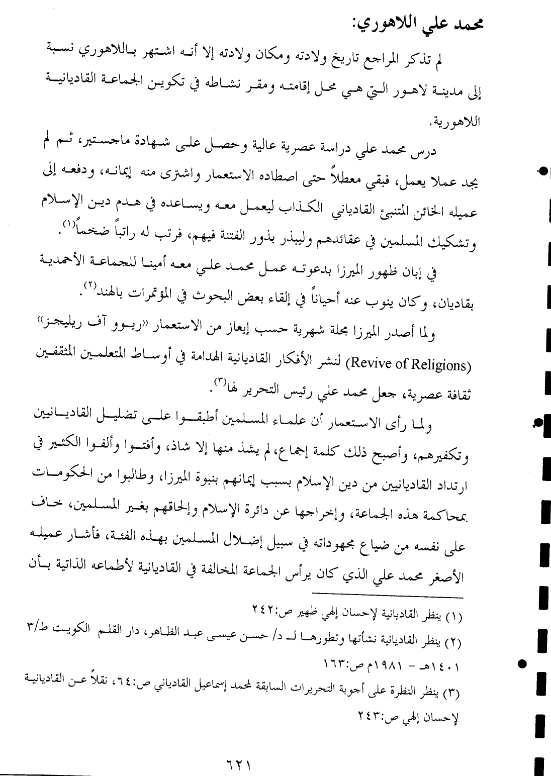 (¬١) ينظر القاديانية لإحسان إلهي ظهير ص: ٢٤٢.