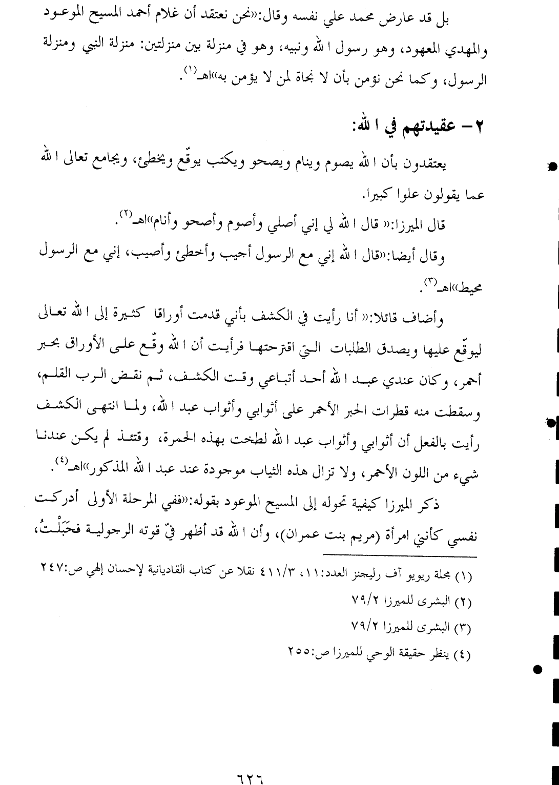 (¬١) مجلة ريويو آف رليجنز العدد: ١١، ٣/ ٤١١ نقلا عن كتاب القاديانية لإحسان إلهي ص: ٢٤٧.