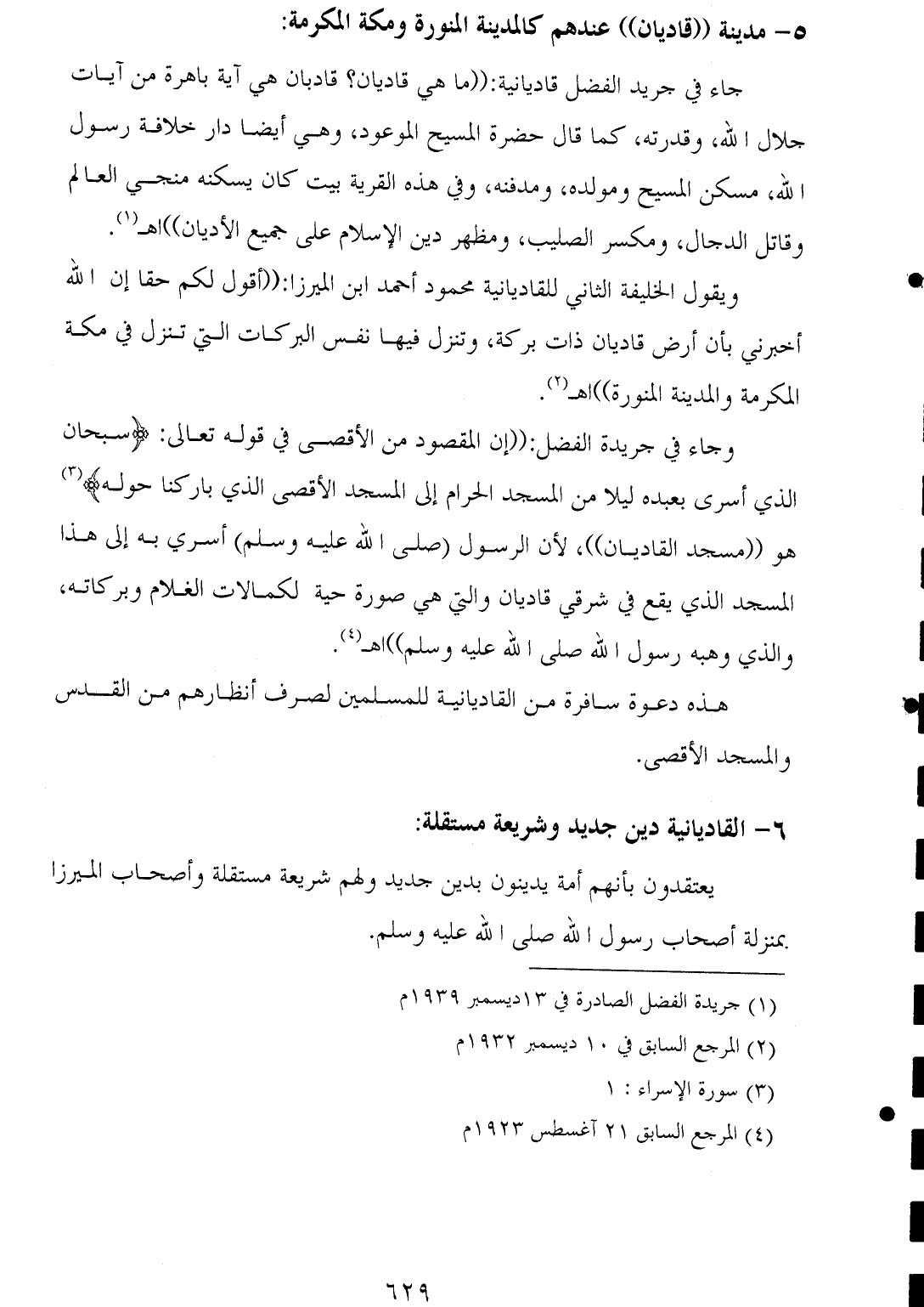 (¬١) جريدة الفضل الصادرة في ١٣ ديسمبر ١٩٣٩ م.