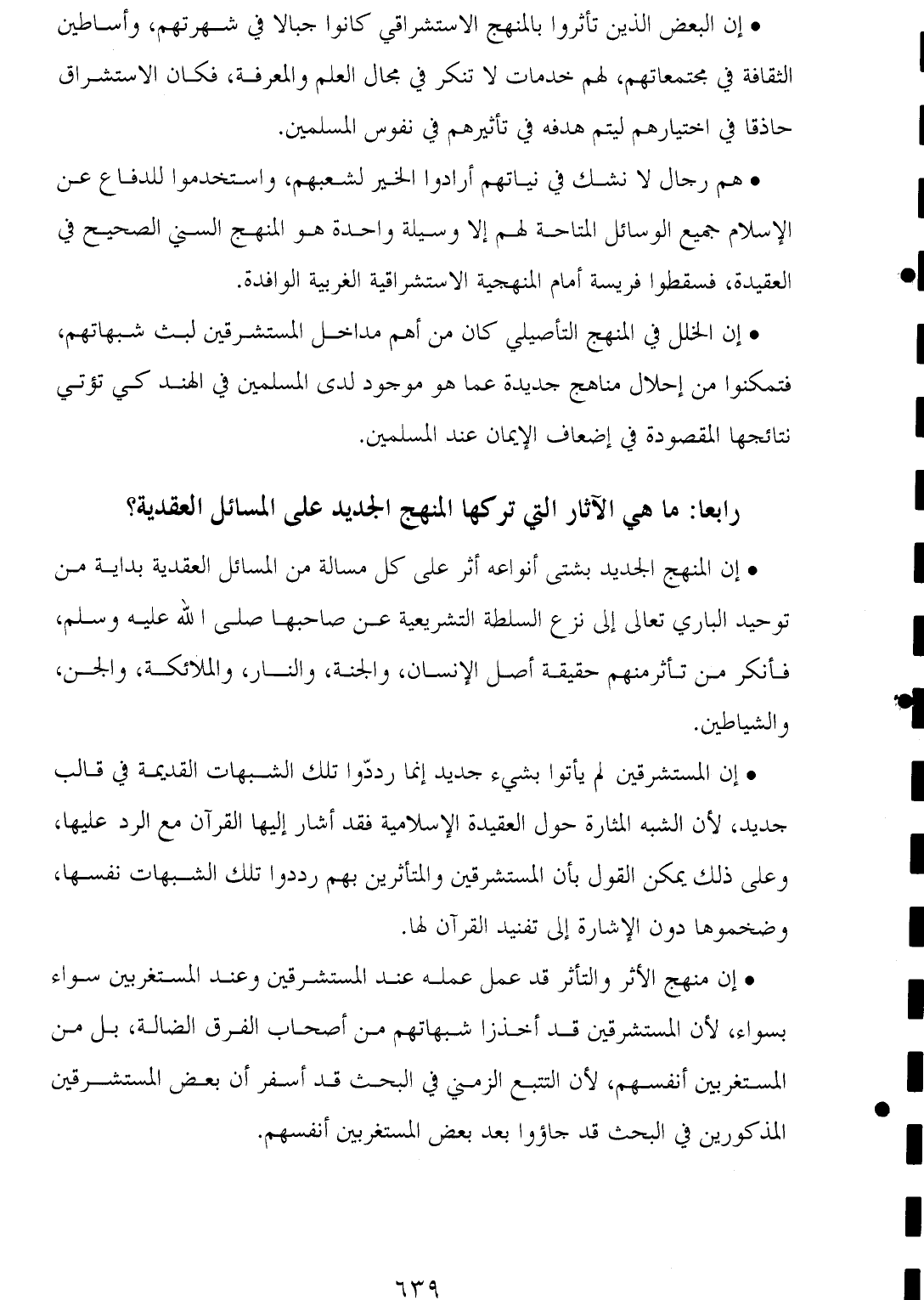 * إن الخلل في المنهج التأصيلي كان من أهم مداخل المستشرقين لبث شبهاتهم، فتمكنوا من إحلال مناهج جديدة عما هو موجود لدى المسلمين في الهند كي تؤتي نتائجها المقصودة في إضعاف الإيمان عند المسلمين.