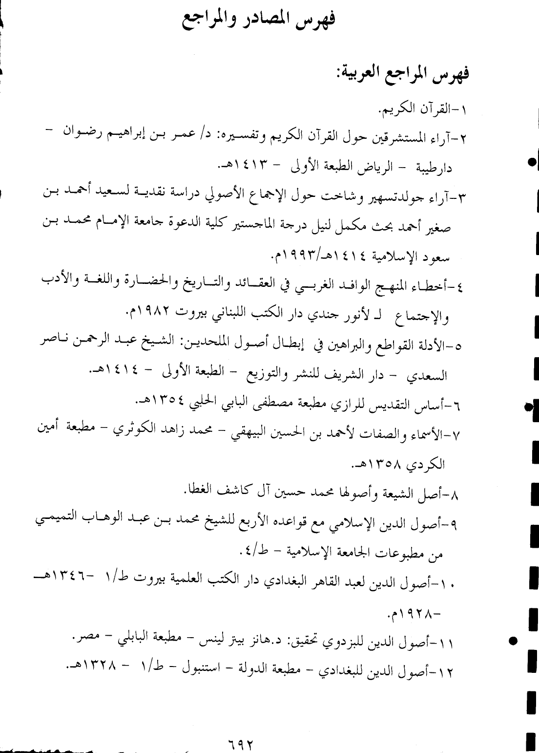 ٣ - آراء جولدتسهير وشاخت حول الإجماع الأصولي دراسة نقدية لسعيد أحمد بن صغير أحمد بحث مكمل لنيل درجة الماجستير كلية الدعوة جامعة الإمام محمد بن سعود الإسلامية ١٤١٤ هـ / ١٩٩٣ م.