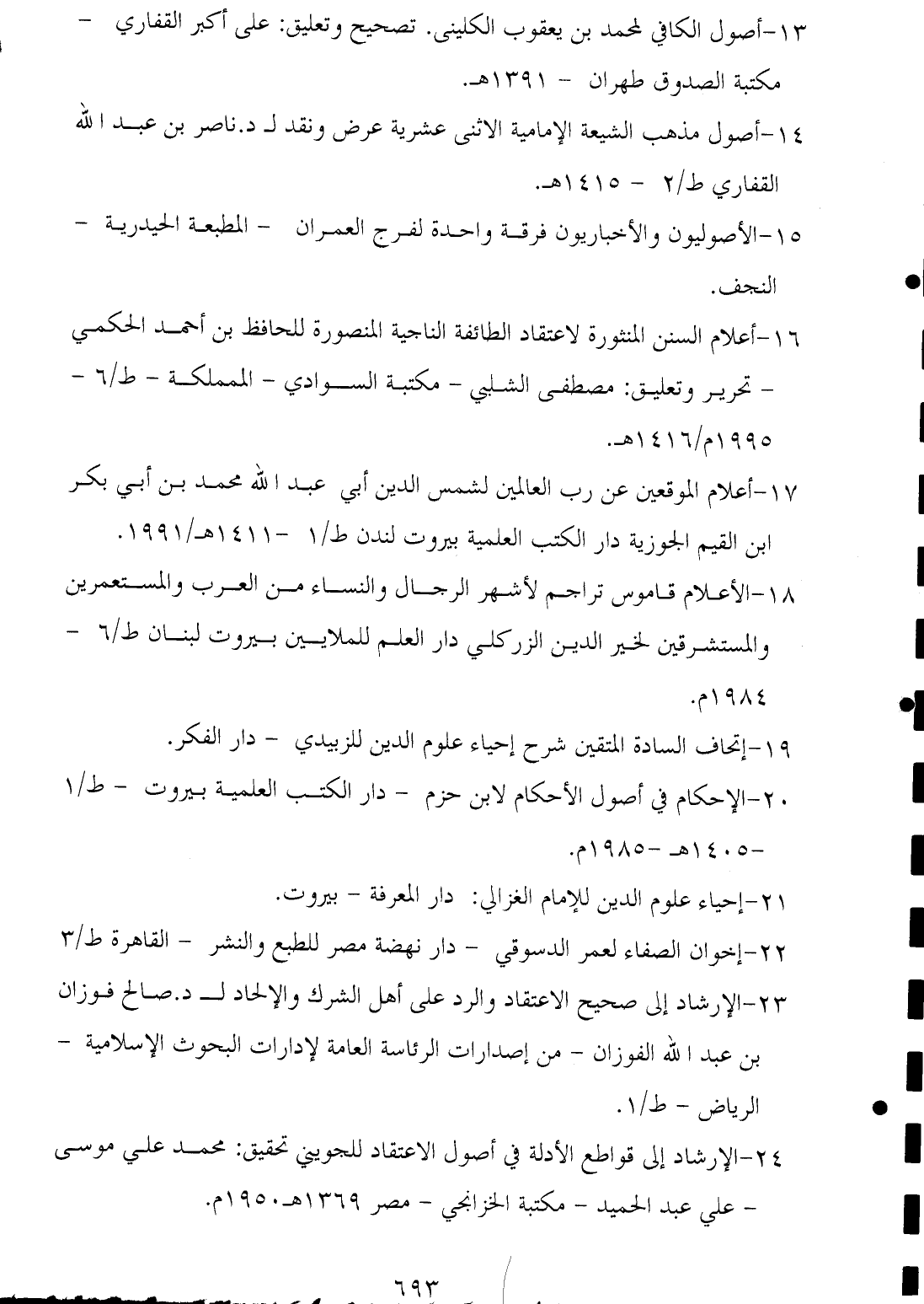 ١٦ - أعلام السنن المنثورة لاعتقاد الطائفة الناجية المنصورة للحافظ بن أحمد الحكمي - تحرير وتعليق: مصطفى الشلبي- مكتبة السوادي- المملكة - ط / ٦ - ١٩٩٥ م / ١٤١٦ هـ.