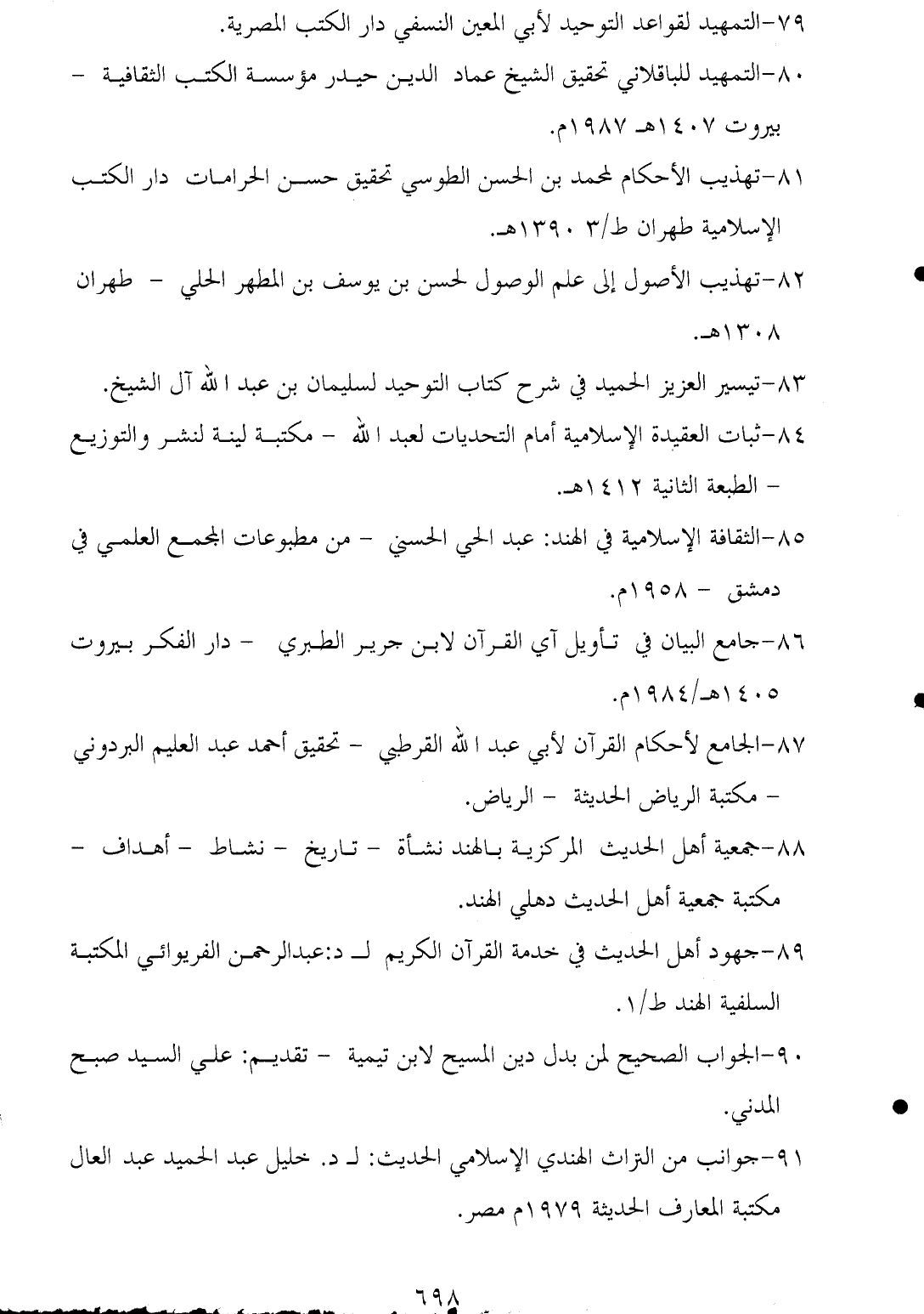٨٠ - التمهيد للباقلاني تحقيق الشيخ عماد الدين حيدر مؤسسة الكتب الثقافية - بيروت ١٤٠٧ هـ ١٩٨٧ م.