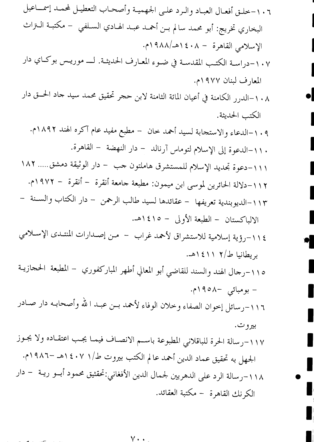 ١٠٦ - خلق أفعال العباد والرد على الجهمية وأصحاب التعطيل لمحمد إسماعيل البخاري تخريج: أبو محمد سالم بن أحمد عبد الهادي السلفي - مكتبة التراث الإسلامي القاهرة - ١٤٠٨ هـ / ١٩٨٨ م.