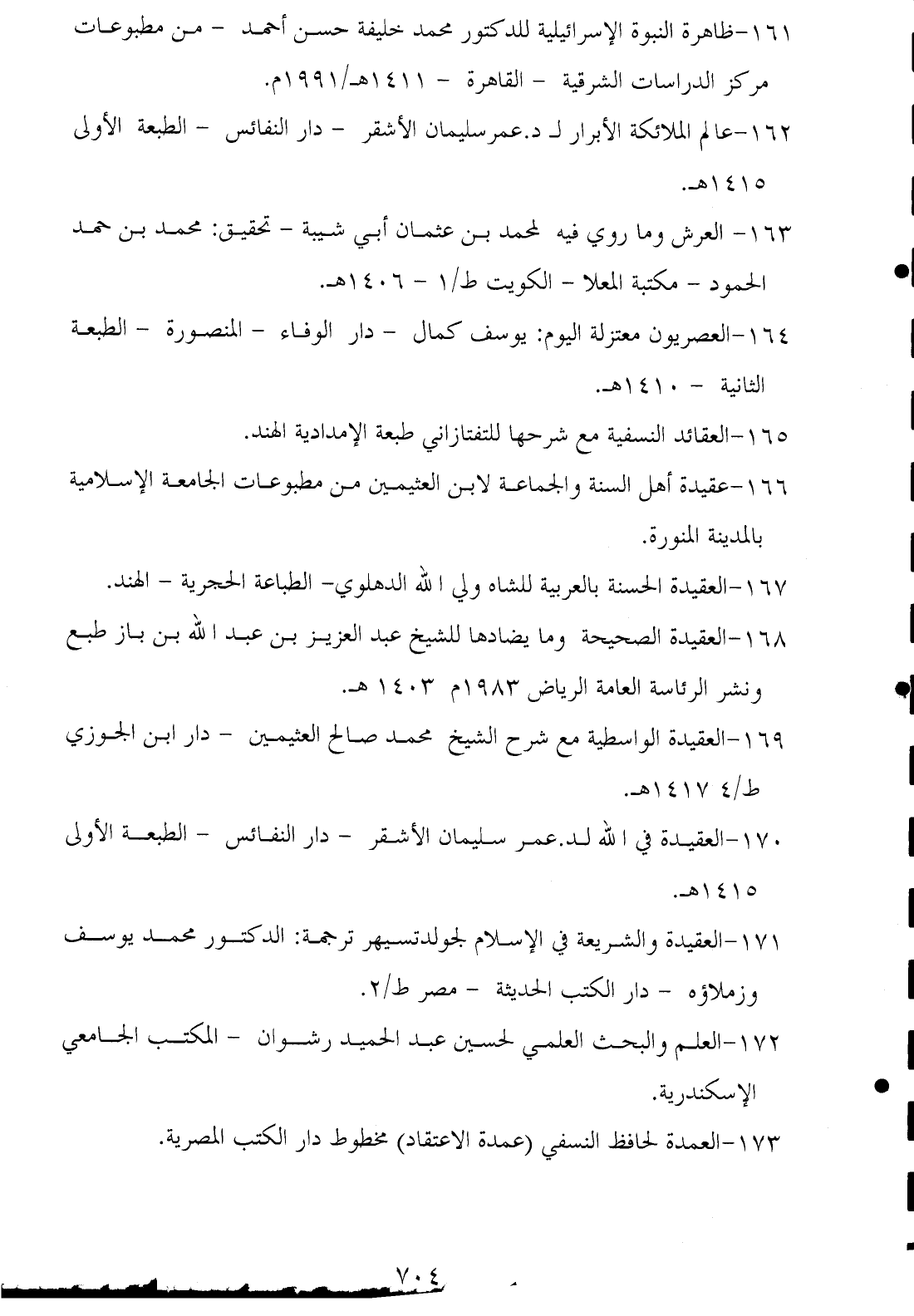 ١٦٦ - عقيدة أهل السنة والجماعة لابن العثيمين من مطبوعات الجامعة الإسلامية بالمدينة المنورة.