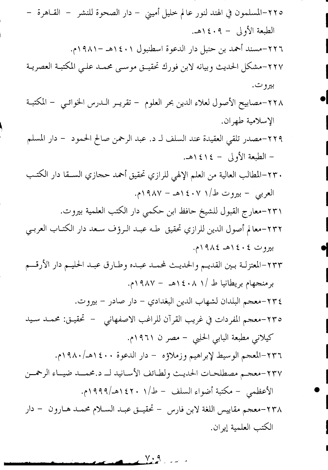 ٢٢٩ - مصدر تلقي العقيدة عند السلف لـ د. عبد الرحمن صالح الحمود - دار المسلم - الطبعة الأولى - ١٤١٤ هـ.
