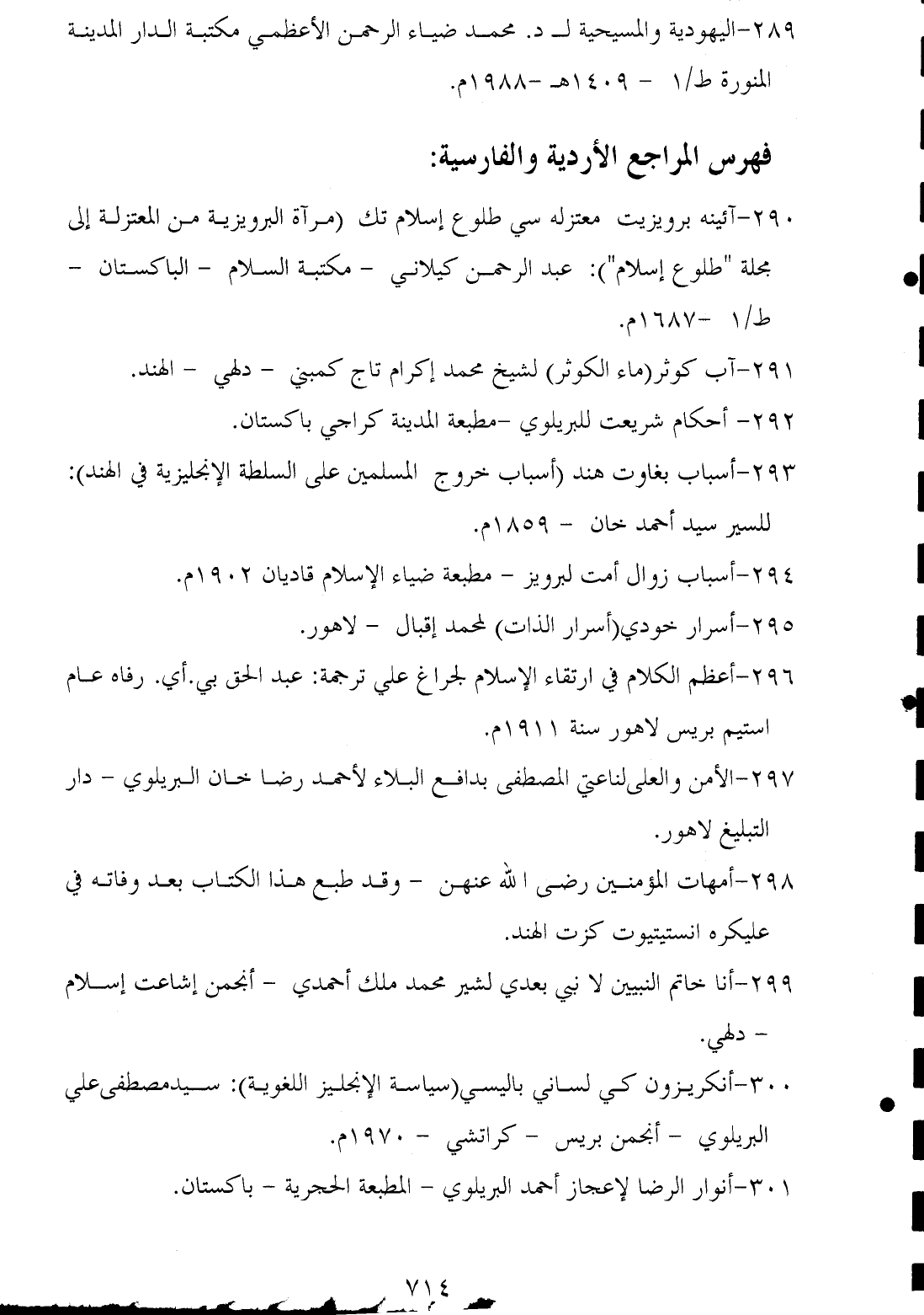 ٢٩٠ - آئينه برويزيت معتزله سي طلوع إسلام تك (مرآة البرويزية من المعتزلة إلى مجلة "طلوع إسلام"): عبد الرحمن كيلاني - مكتبة السلام - الباكستان - ط /١ - ١٦٨٧ م.