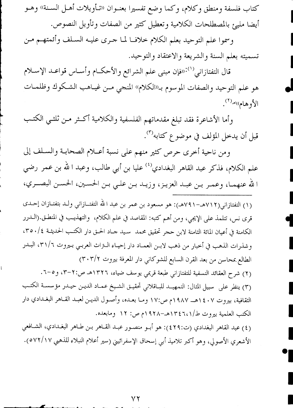 وأما الأشاعرة فقد تبلغ مقدماتهم الفلسفية والكلامية أكثر من ثلثي الكتب قبل أن يدخل المؤلف في موضوع كتابه (¬٣).