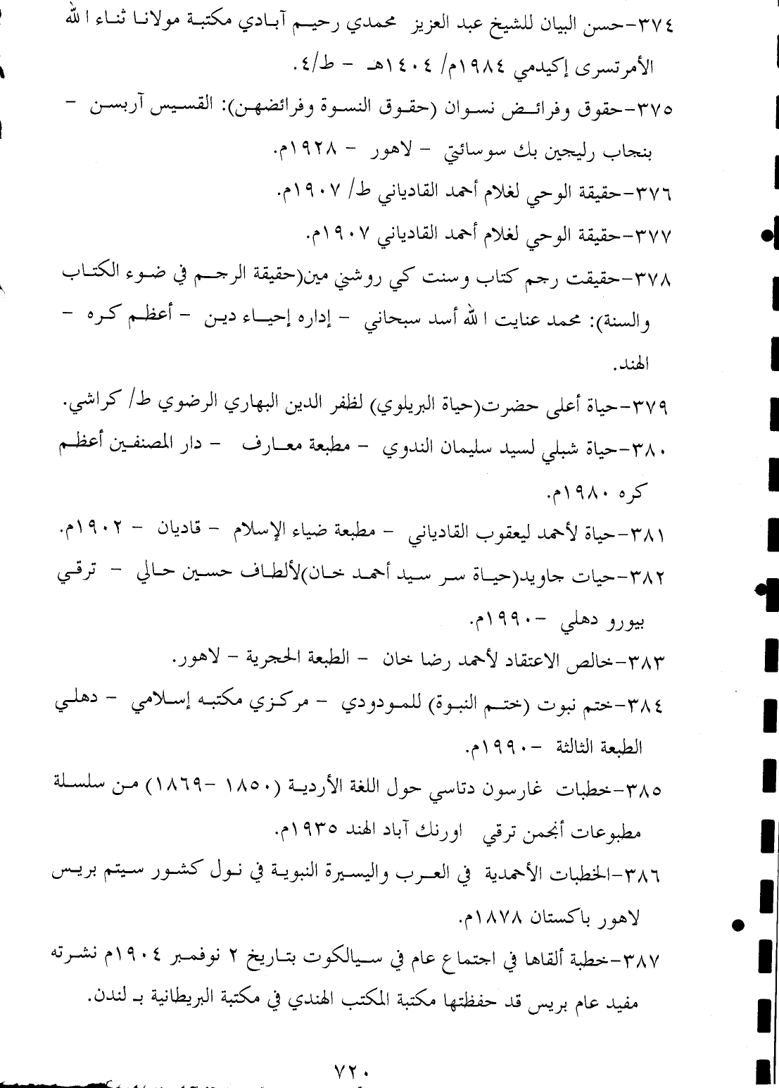 ٣٨٧ - خطبة ألقاها في اجتماع عام في سيالكوت بتاريخ ٢ نوفمبر ١٩٠٤ م نشرته مفيد عام بريس قد حفظتها مكتبة المكتب الهندي في مكتبة البريطانية بـ لندن.