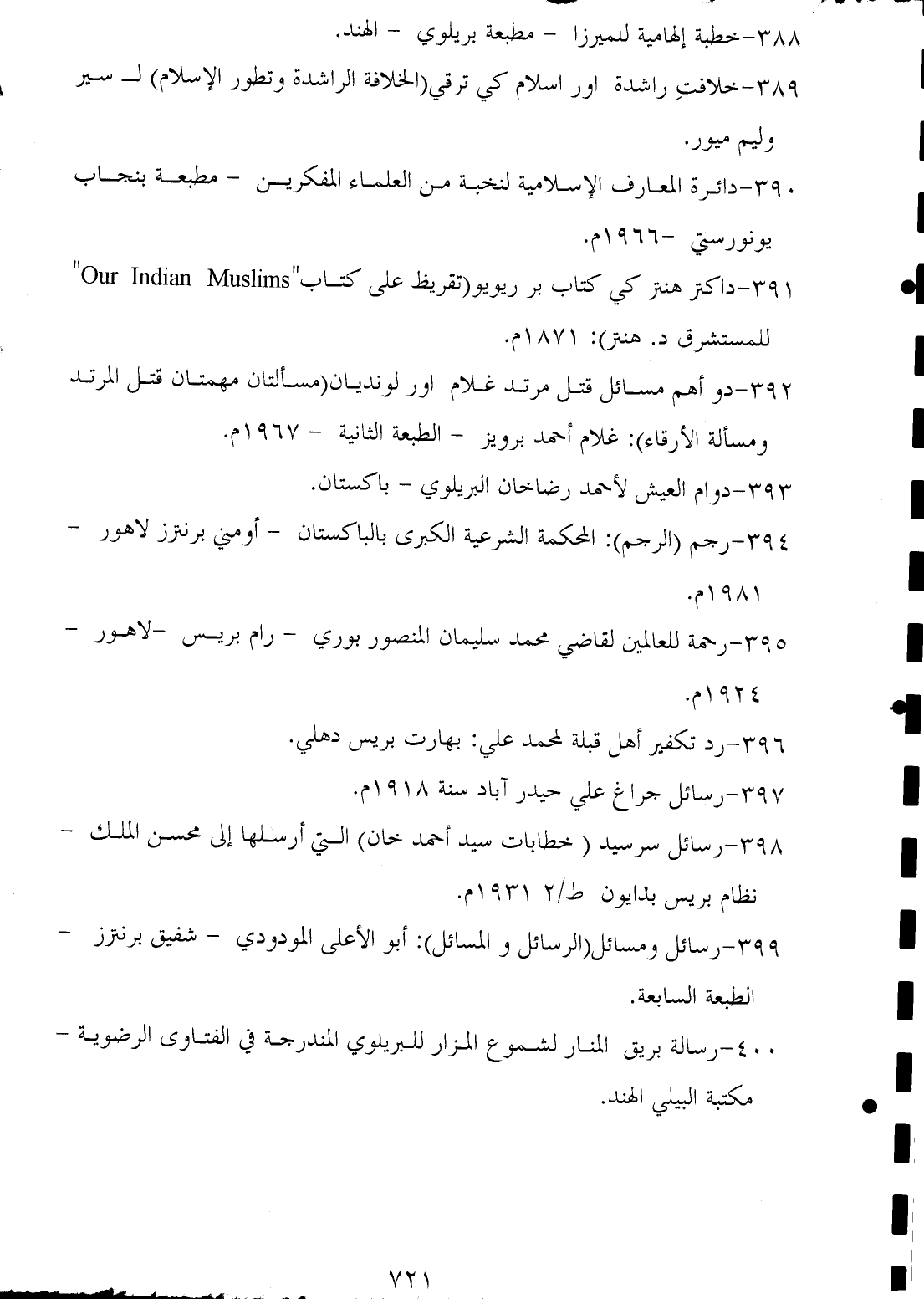 ٤٠٠ - رسالة بريق المنار لشموع المزار للبريلوي المندرجة في الفتاوى الرضوية - مكتبة البيلي الهند.