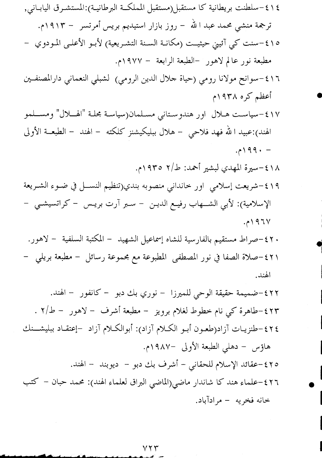 ٤١٥ - سنت كي آئيني حيثيت (مكانة السنة التشريعية) لأبو الأعلى المودوي - مطبعة نور عالم لاهور- الطبعة الرابعة - ١٩٧٧ م.