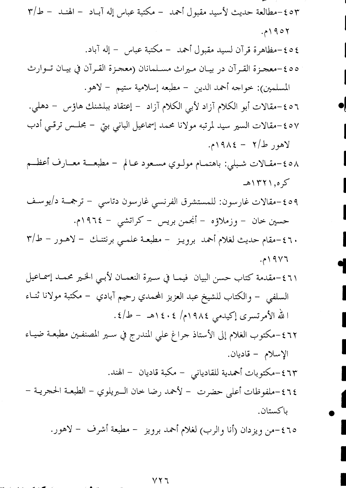 ٤٥٧ - مقالات السير سيد لمرتبه مولانا محمد إسماعيل الباني بتي - مجلس ترقي أدب لاهور ط / ٢ - ١٩٨٤ م.