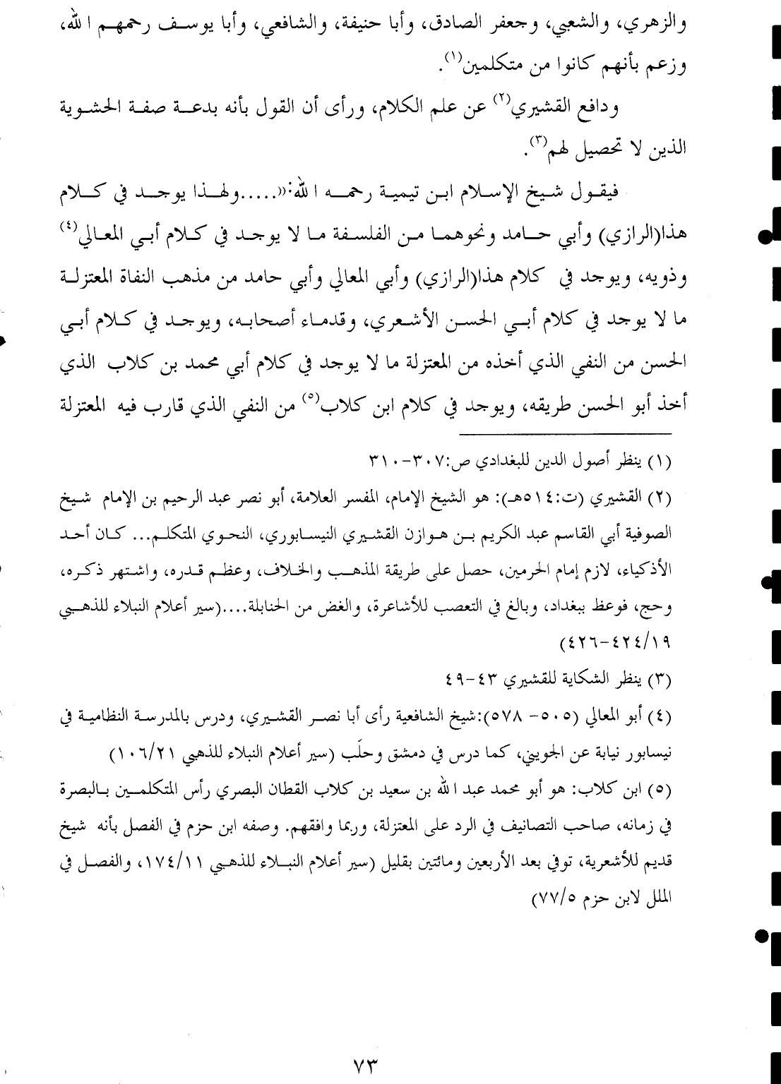 ودافع القشيري (¬٢) عن علم الكلام، ورأى أن القول بأنه بدعة صفة الحشوية الذين لا تحصيل لهم (¬٣).