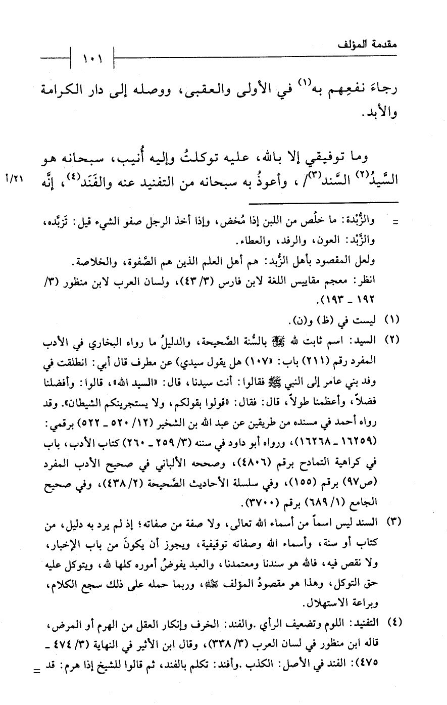 وما توفيقي إلا بالله، عليه توكلتُ وإليه أُنيب، سبحانه هو السَّيدُ (¬2) السَّند (¬3)، وأعوذُ به سبحانه من التفنيد عنه والفَنَد (¬4)، إنَّه