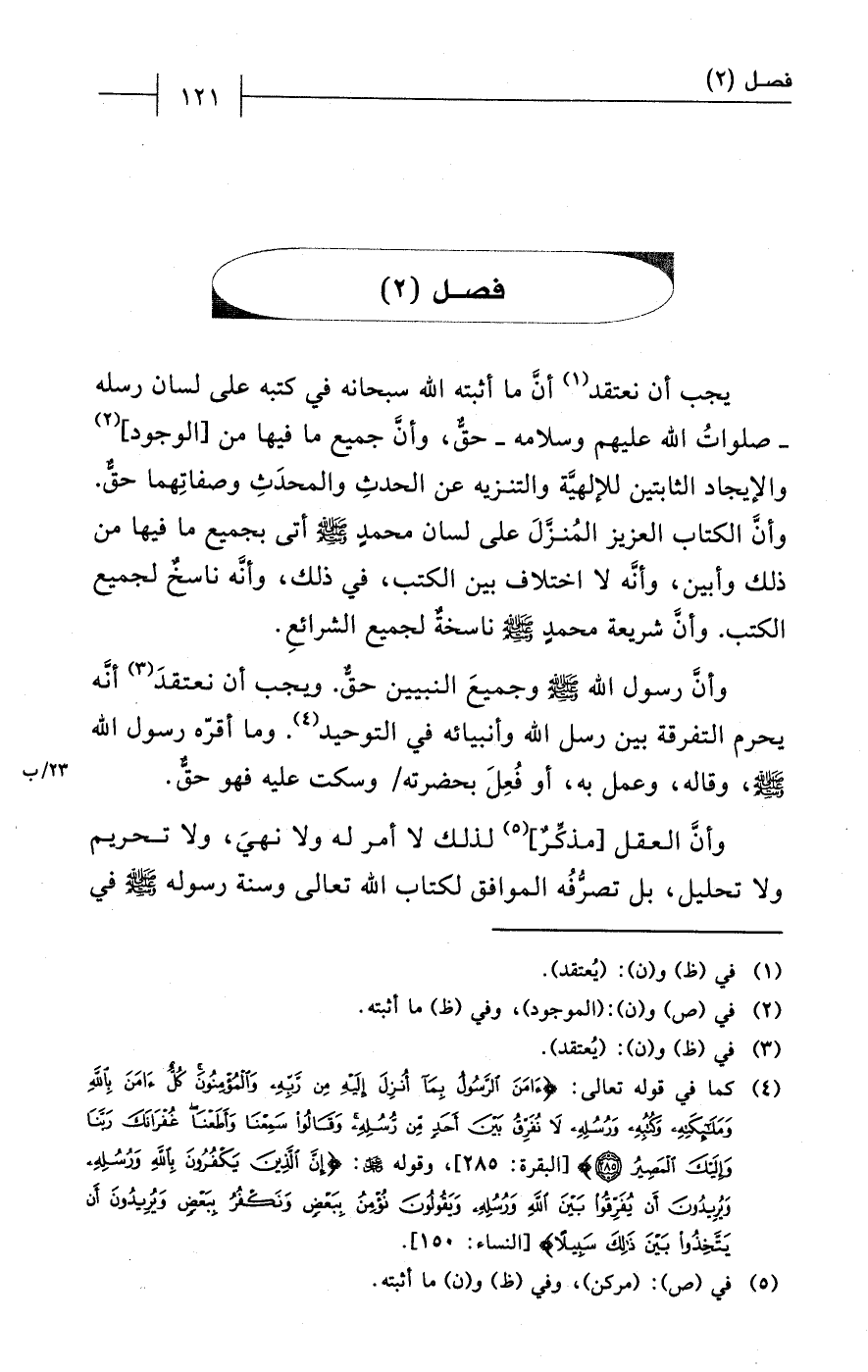 يجب أن نعتقد (¬1) أنَّ ما أثبته الله سبحانه في كتبه على لسان رسله - صلواتُ الله عليهم وسلامه - حقٌّ، وأنَّ جميع ما فيها من [الوجود] (¬2) والإيجاد الثابتين للإلهيَّة والتنزيه عن الحدثِ والمحدَثِ وصفاتِهما حقٌّ. وأنَّ الكتاب العزيز المُنزَّلَ على لسان محمدٍ - صلى الله عليه وسلم - أتى بجميع ما فيها من ذلك وأبين، وأنَّه لا اختلاف بين الكتب، في ذلك، وأنَّه ناسخٌ لجميع الكتب. وأنَّ شريعة محمدٍ - صلى الله عليه وسلم - ناسخةٌ لجميع الشرائعِ.