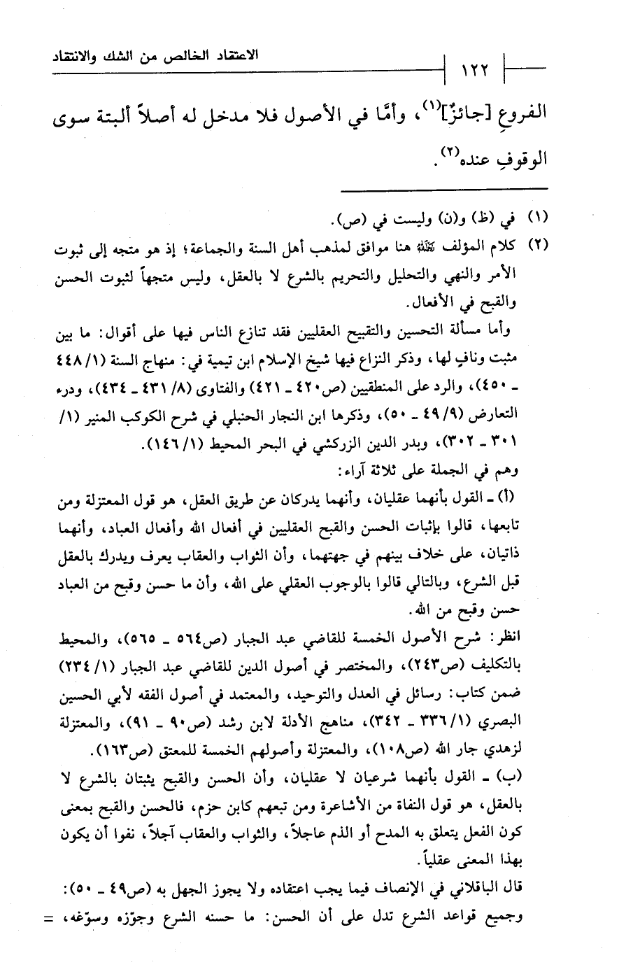وأما مسألة التحسين والتقبيح العقليين فقد تنازع الناس فيها على أقوال: ما بين مثبت ونافٍ لها، وذكر النزاع فيها شيخ الإسلام ابن تيمية في: منهاج السنة (1/ 448 - 450)، والرد على المنطقيين (ص 420 - 421) والفتاوى (8/ 431 - 434)، ودرء التعارض (9/ 49 - 50)، وذكرها ابن النجار الحنبلي في شرح الكوكب المنير (1/ 301 - 302)، وبدر الدين الزركشي في البحر المحيط (1/ 146).