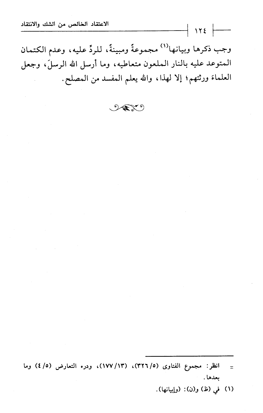 وجب ذكرها وبيانها (¬1) مجموعةً ومبينةً، للردِّ عليه، وعدم الكتمان المتوعد عليه بالنار الملعون متعاطيه، وما أرسل الله الرسلَ، وجعل العلماءَ ورثتهم؛ إلا لهذا، والله يعلم المفسد من المصلح.