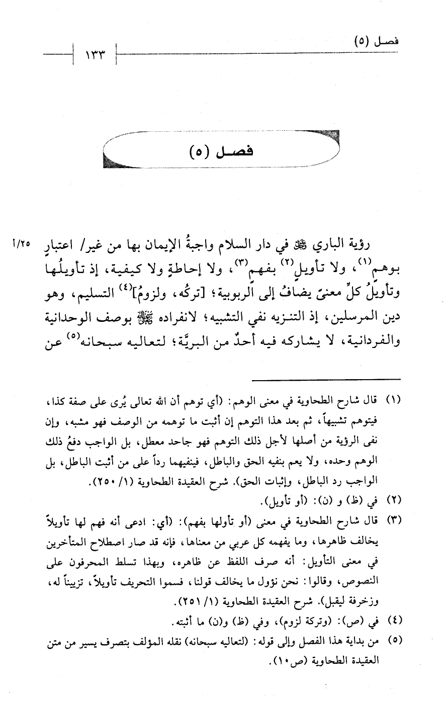 (¬5) من بداية هذا الفصل وإلى قوله: (لتعاليه سبحانه) نقله المؤلف بتصرف يسير من متن العقيدة الطحاوية (ص 10).
