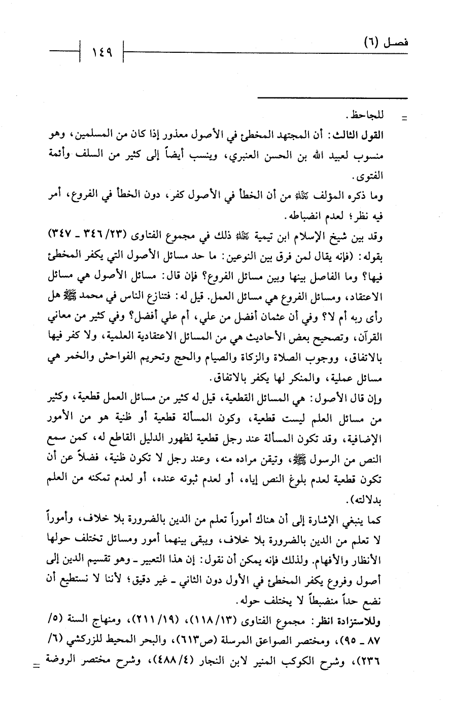وللاستزادة انظر: مجموع الفتاوى (13/ 118)، (19/ 211)، ومنهاج السنة (5/ 87 - 95)، ومختصر الصواعق المرسلة (ص 613)، والبحر المحيط للزركشي (6/ 236)، وشرح الكوكب المنير لابن النجار (4/ 488)، وشرح مختصر الروضة =