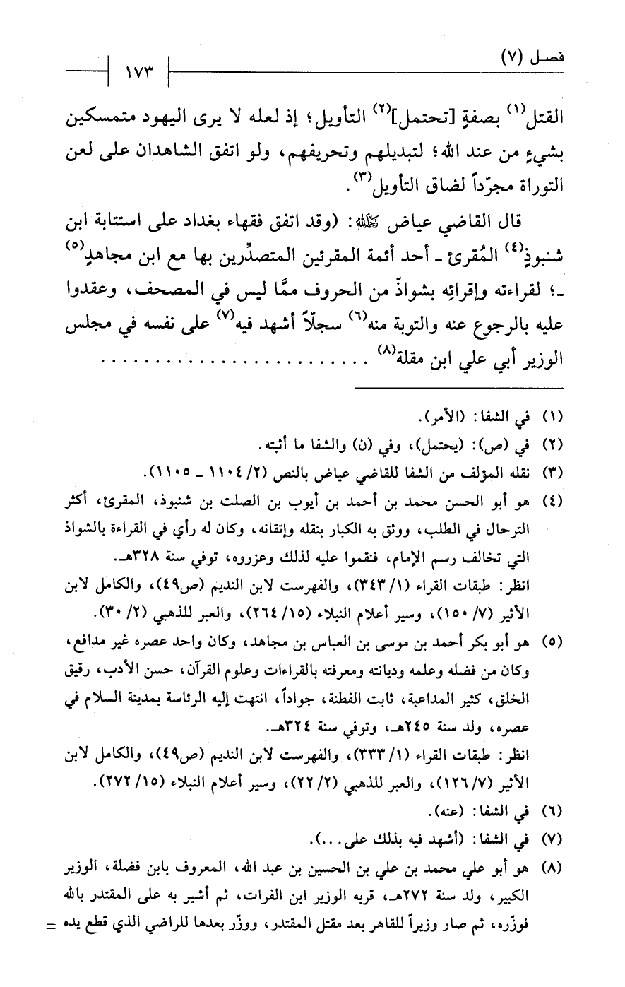 (¬3) نقله المؤلف من الشفا للقاضي عياض بالنص (2/ 1104 - 1105).