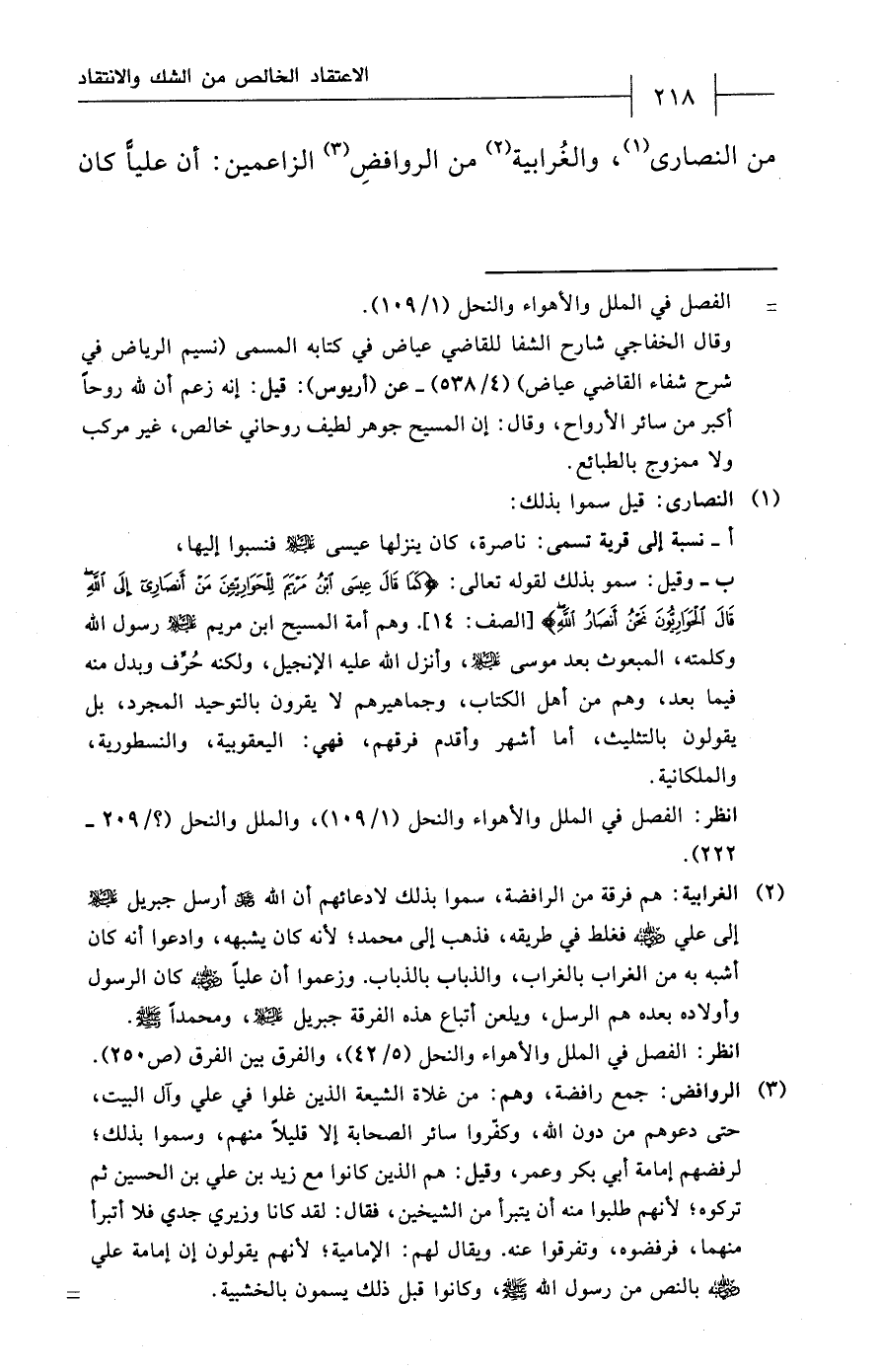 من النصارى (¬1)، والغُرابية (¬2) من الروافضِ (¬3) الزاعمين: أن عليًّا كان