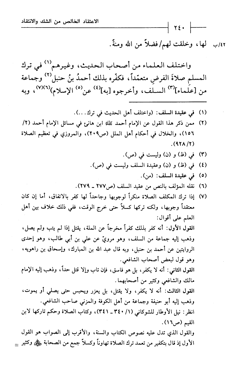 (¬1) في عقيدة السلف: (واختلف أهل الحديث في ترك ...).