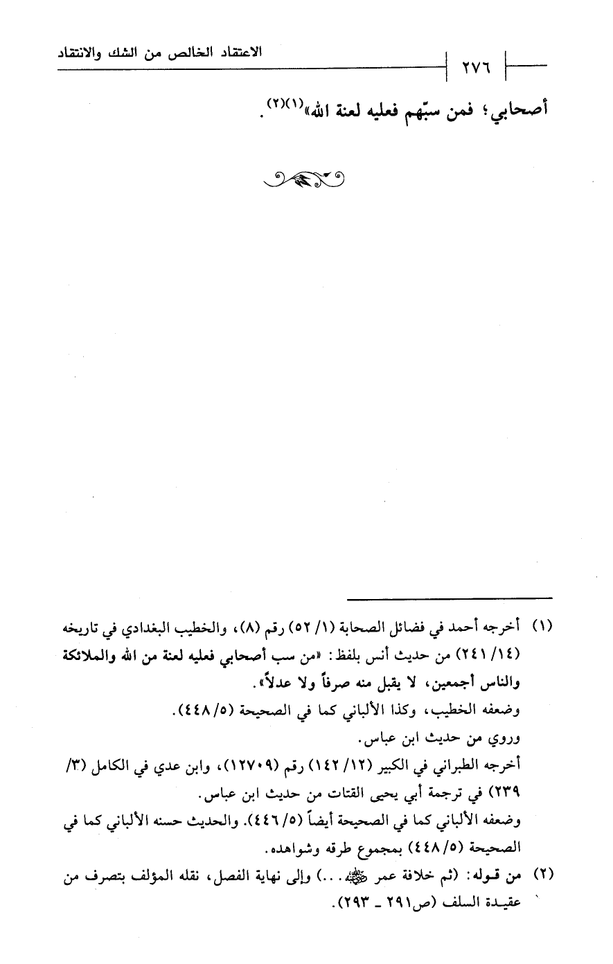 (¬2) من قوله: (ثم خلافة عمر - رضي الله عنه - ...) وإلى نهاية الفصل، نقله المؤلف بتصرف من عقيدة السلف (ص 291 - 293).