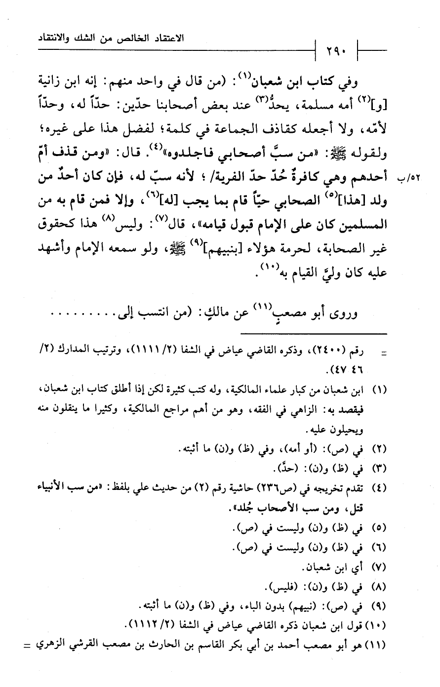 (¬10) قول ابن شعبان ذكره القاضي عياض في الشفا (2/ 1112).