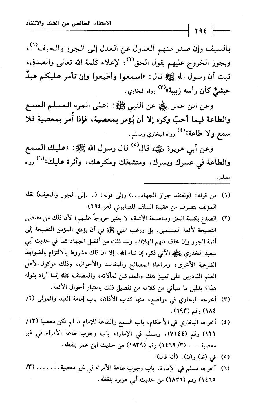 (¬1) من قوله: (ونعتقد جواز الجهاد ...) وإلى قوله: (... إلى الجور والحيف) نقله المؤلف بتصرف من عقيدة السلف للصابوني (ص 294).