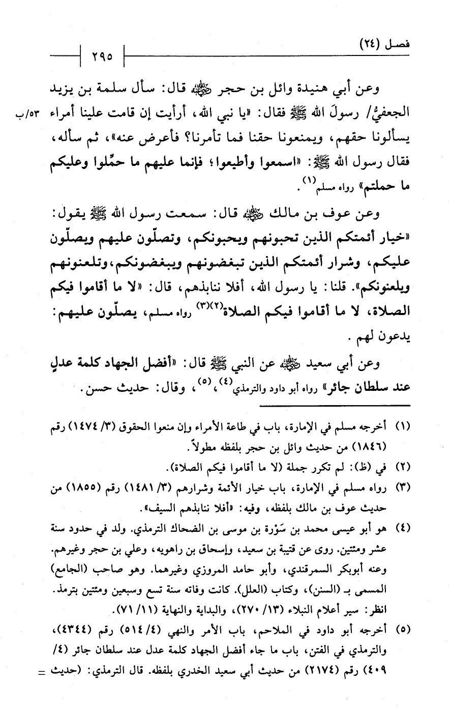 (¬3) رواه مسلم في الإمارة، باب خيار الأئمة وشرارهم (3/ 1481) رقم (1855) من حديث عوف بن مالك بلفظه، وفيه: "أفلا ننابذهم السيف".