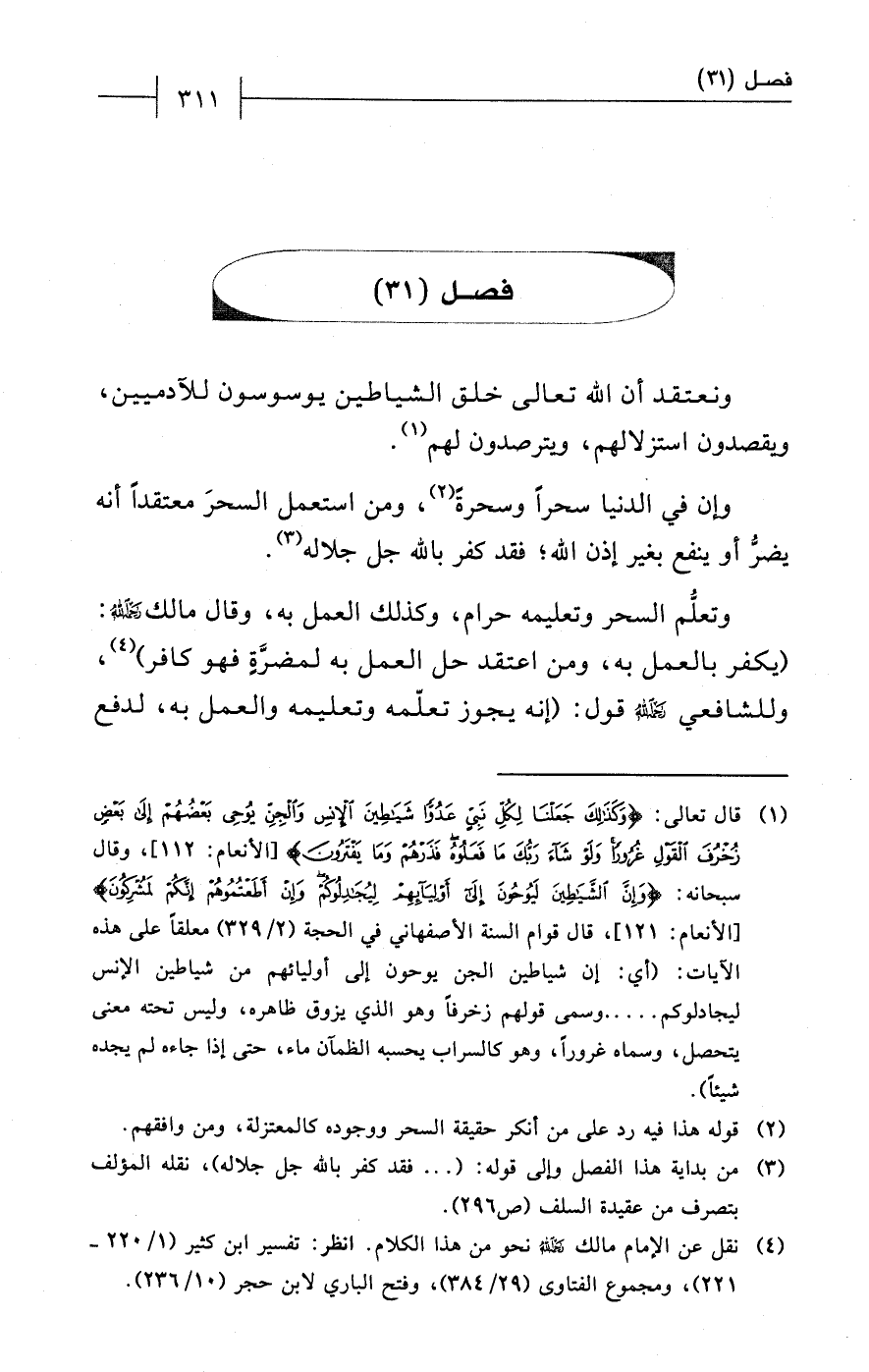 (¬3) من بداية هذا الفصل وإلى قوله: (... فقد كفر بالله جل جلاله)، نقله المؤلف بتصرف من عقيدة السلف (ص 296).