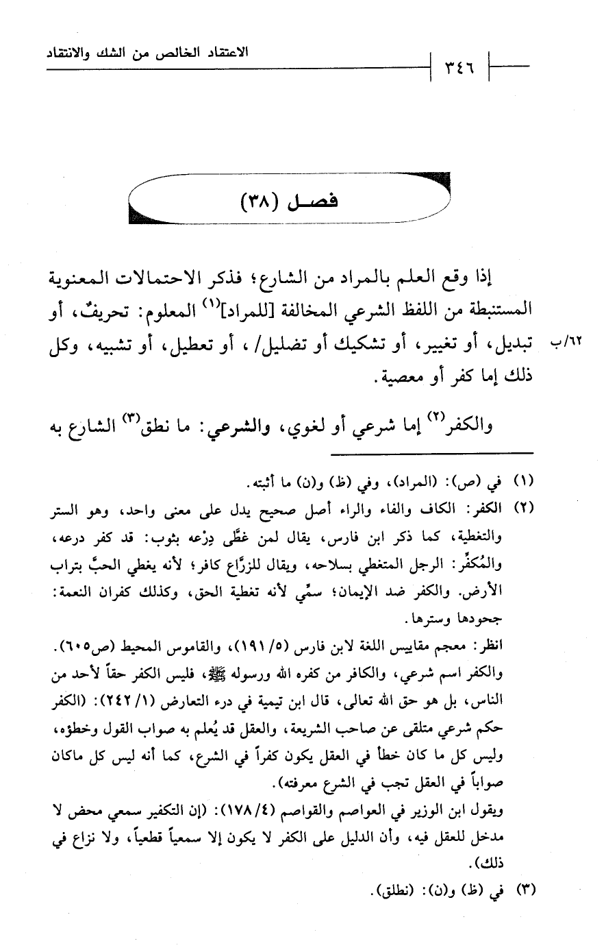 إذا وقع العلم بالمراد من الشارع؛ فذكر الاحتمالات المعنوية المستنبطة من اللفظ الشرعي المخالفة [للمراد] (¬1) المعلوم: تحريفٌ، أو تبديل، أو تغيير، أو تشكيك أو تضليل، أو تعطيل، أو تشبيه، وكل ذلك إما كفر أو معصية.
