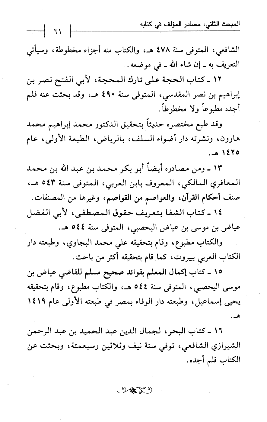 12 - كتاب الحجة على تارك المحجة، لأبي الفتح نصر بن إبراهيم بن نصر المقدسي، المتوفى سنة 490 هـ، وقد بحثت عنه فلم أجده مطبوعاً ولا مخطوطاً.