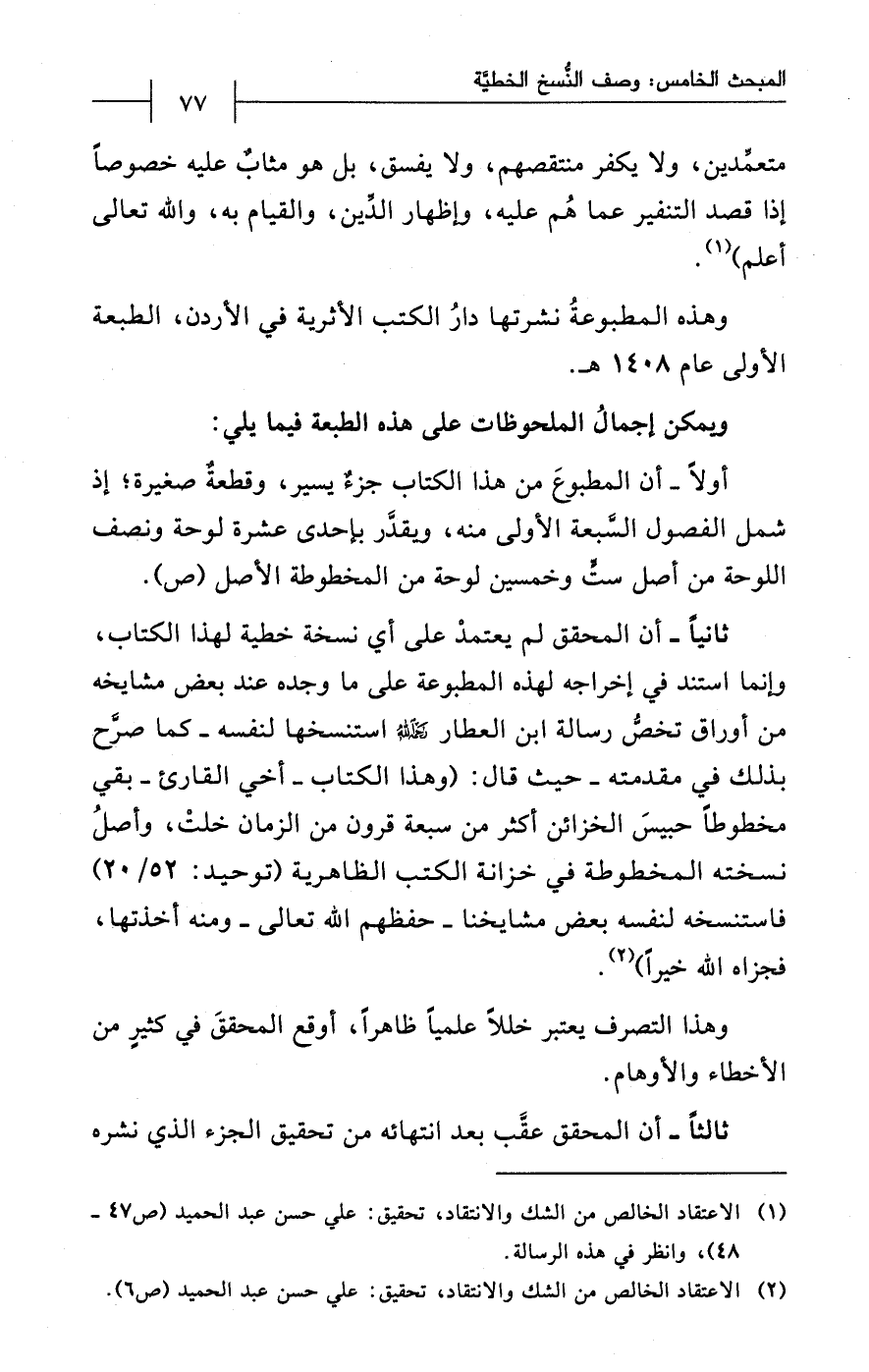 (¬2) الاعتقاد الخالص من الشك والانتقاد، تحقيق: علي حسن عبد الحميد (ص 6).