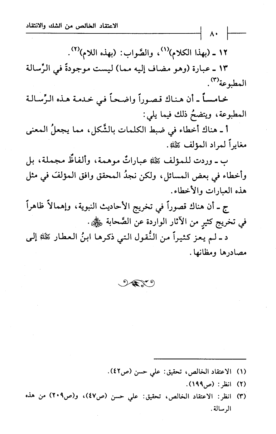 (¬1) الاعتقاد الخالص، تحقيق: علي حسن (ص 42).