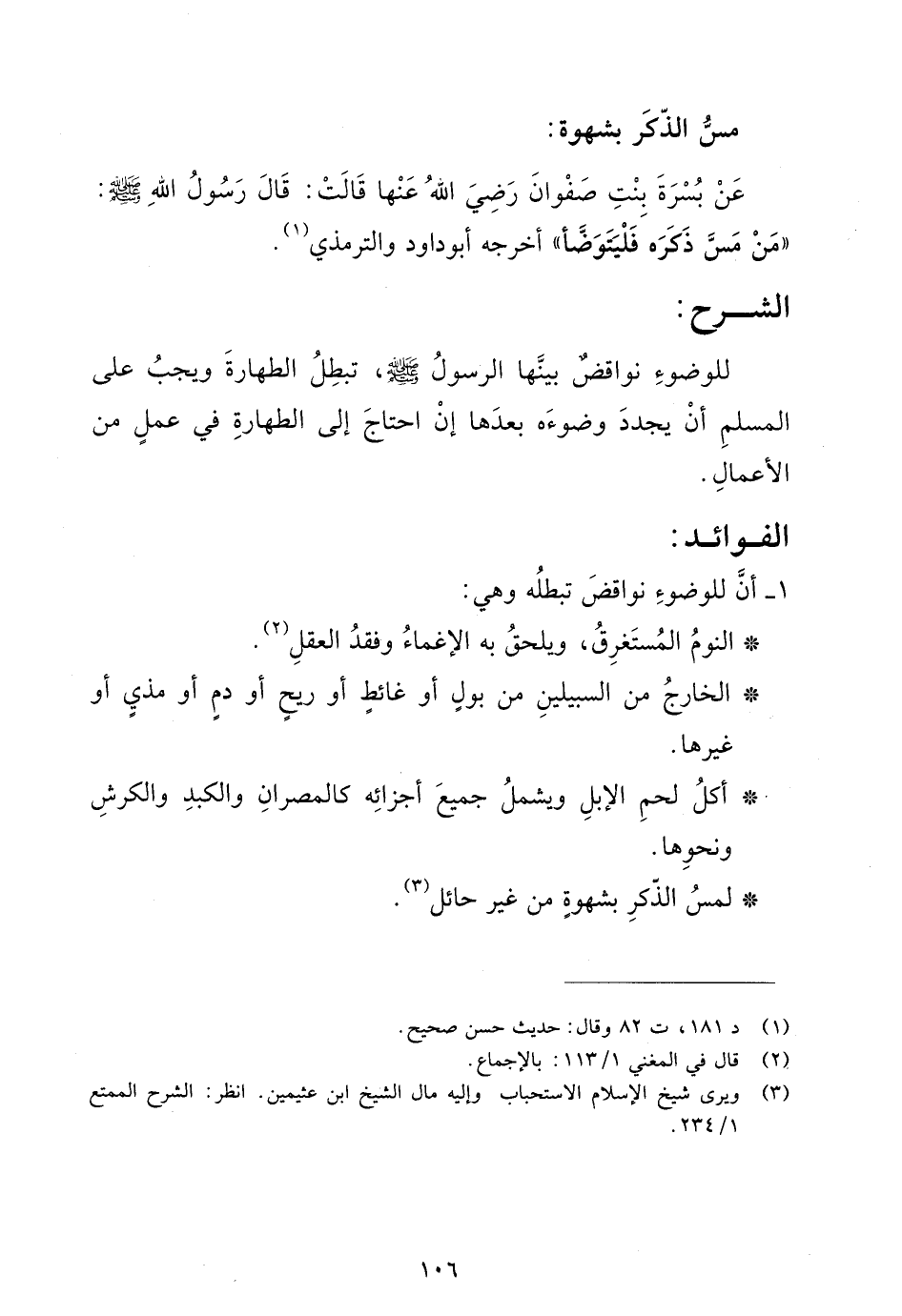 عن بسرة بنت صفوان رضي الله عنها قالت: قال رسول الله صلى الله عليه وسلم: "من مس ذكره فليتوضأ" أخرجه أبو داود والترمذي (¬1).