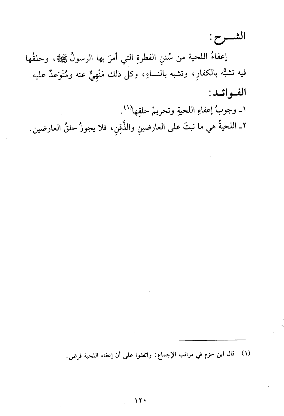 (¬1) قال ابن حزم في مراتب الإجماع: واتفقوا على أن إعفاء اللحية فرض.
