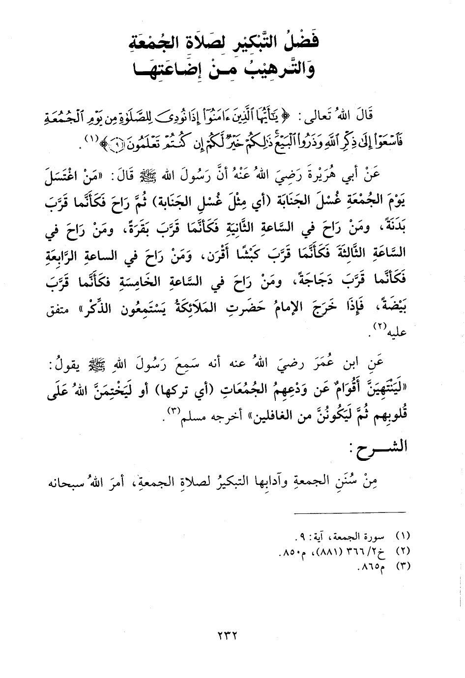 فضل التبكير لصلاة الجمعة والترهيب من إضاعتها