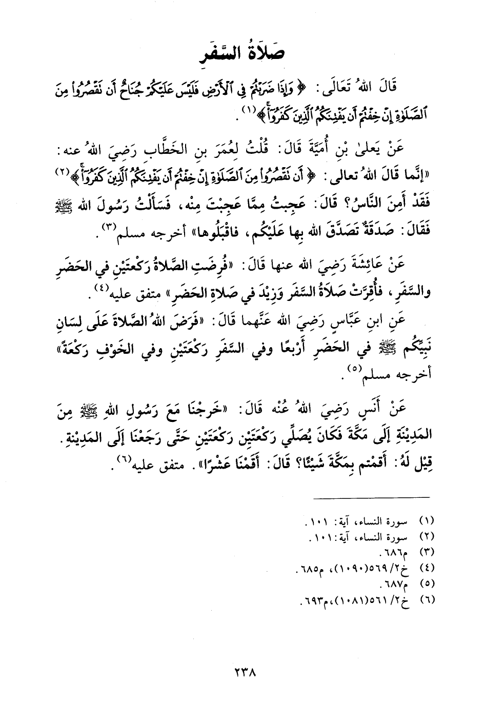 عن يعلى بن أمية قال: قلت لعمر بن الخطاب رضي الله عنه: "إنما قال الله تعالى: {أَن تَقْصُرُوا مِنَ الصَّلاَةِ إِنْ خِفْتُمْ أَن يَفْتِنَكُمُ الَّذِينَ كَفَرُوا} (¬2). فقد أمن الناس؟ قال: عجبت مما عجبت منه، فسألت رسول الله صلى الله عليه وسلم فقال: صدقة تصدق الله بها عليكم، فاقبلوها" أخرجه مسلم (¬3).