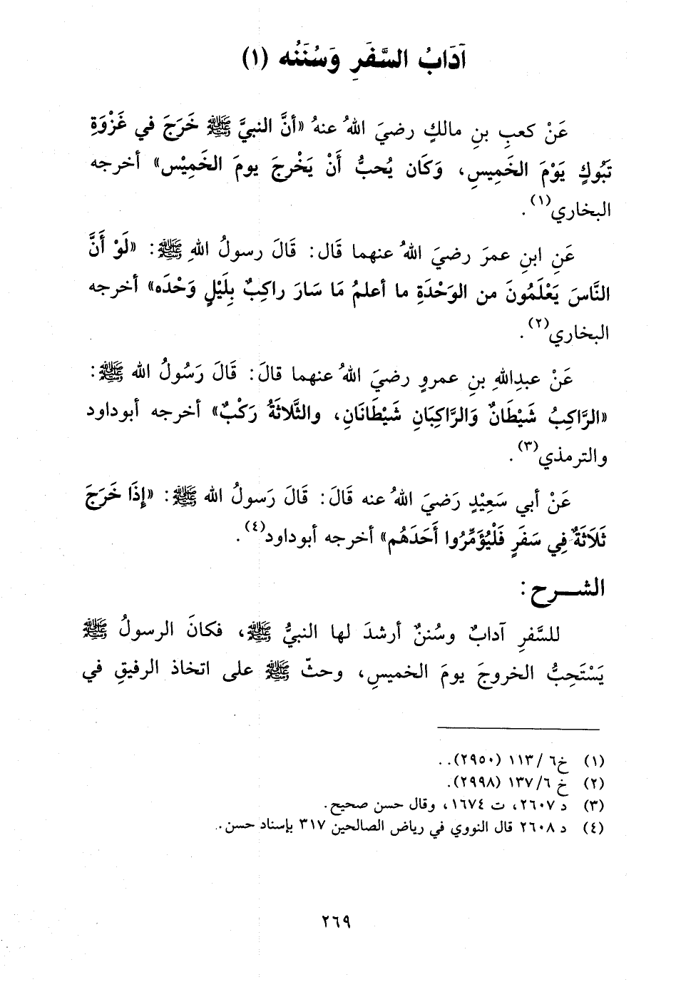 عن عبد الله بن عمرو رضي الله عنهما قال: قال رسول الله صلى الله عليه وسلم: "الراكب شيطان والراكبان شيطانان، والثلاثة ركب" أخرجه أبو داود والترمذي (¬3).