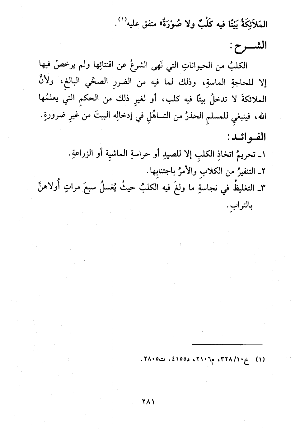 - تحريم اتخاذ الكلب إلا للصيد أو حراسة الماشية أو الزراعة.
