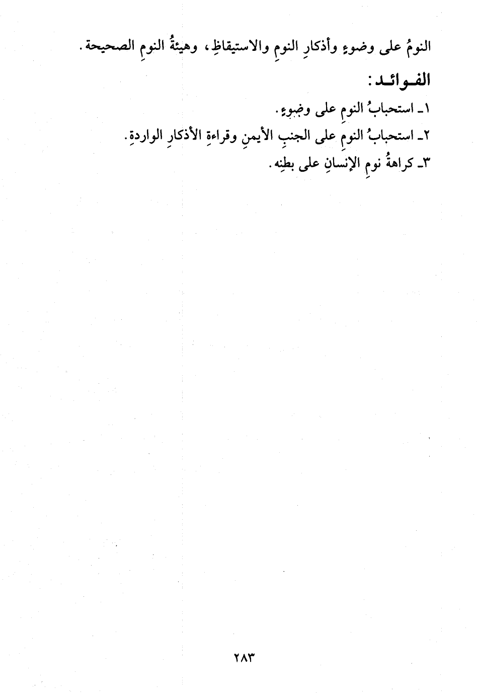 - استحباب النوم على الجنب الأيمن وقراءة الأذكار الواردة.