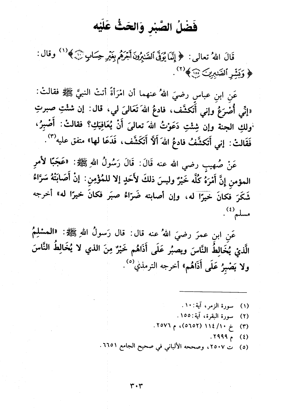 قال الله تعالى: {إِنَّمَا يُوَفَّى الصَّابِرُونَ أَجْرَهُم بِغَيْرِ حِسَابٍ} (¬1). وقال: {وَبَشِّرِ الصَّابِرِينَ} (¬2).