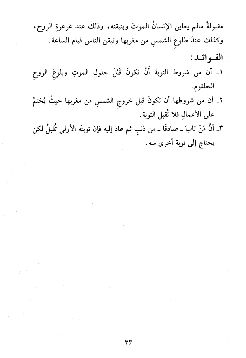 - أن من شروط التوبة أن تكون قبل حلول الموت وبلوغ الروح الحلقوم.